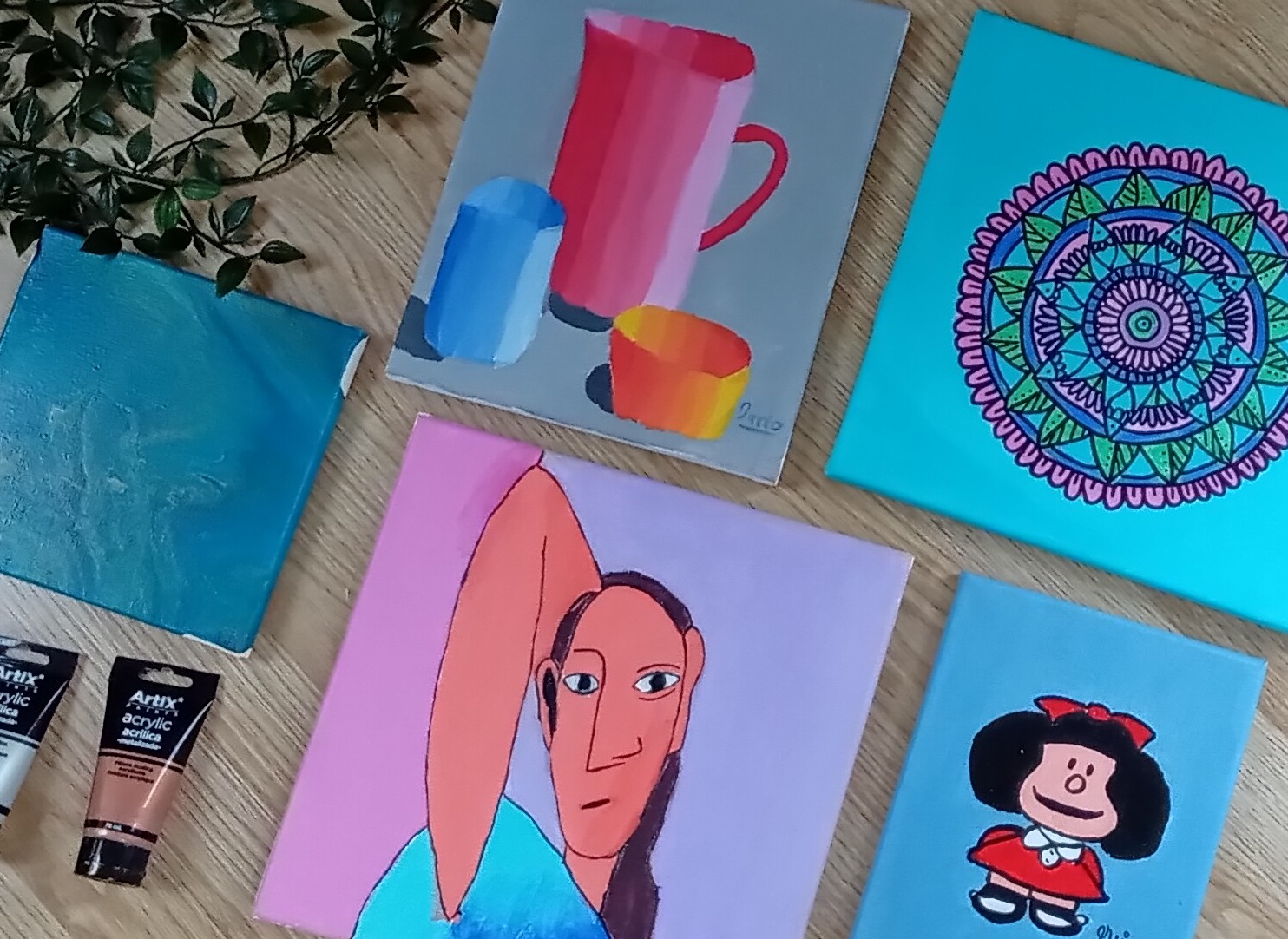 El primer cuadro que pintamos fue por pura curiosidad, queríamos ver que se sentía. Y al final nos hemos viciado, ¡Nos encanta pintar cuadros!